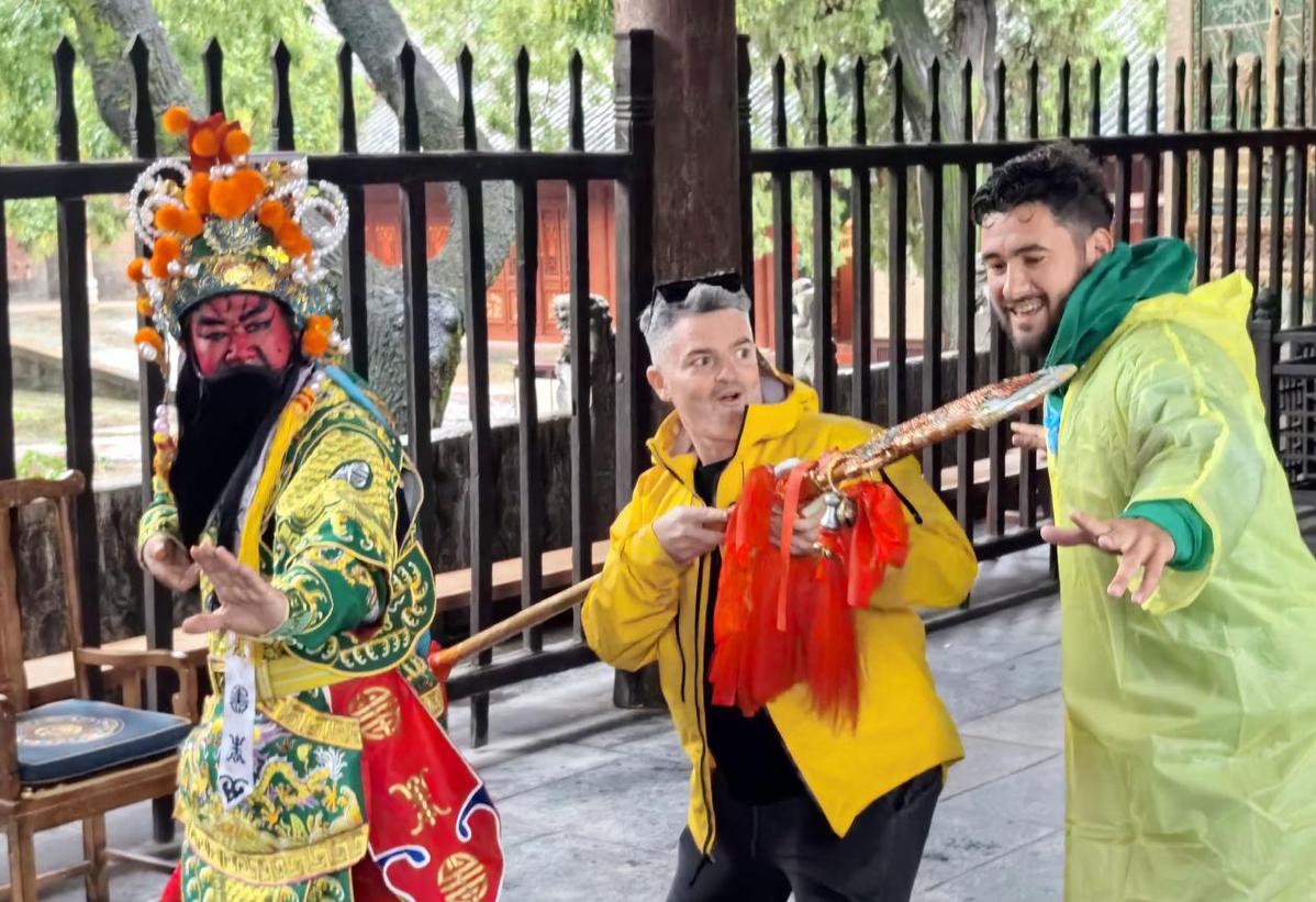 10月17日,在山西省运城市解州关帝庙,外国博主联系上了饰演关公的演员。王文东 摄