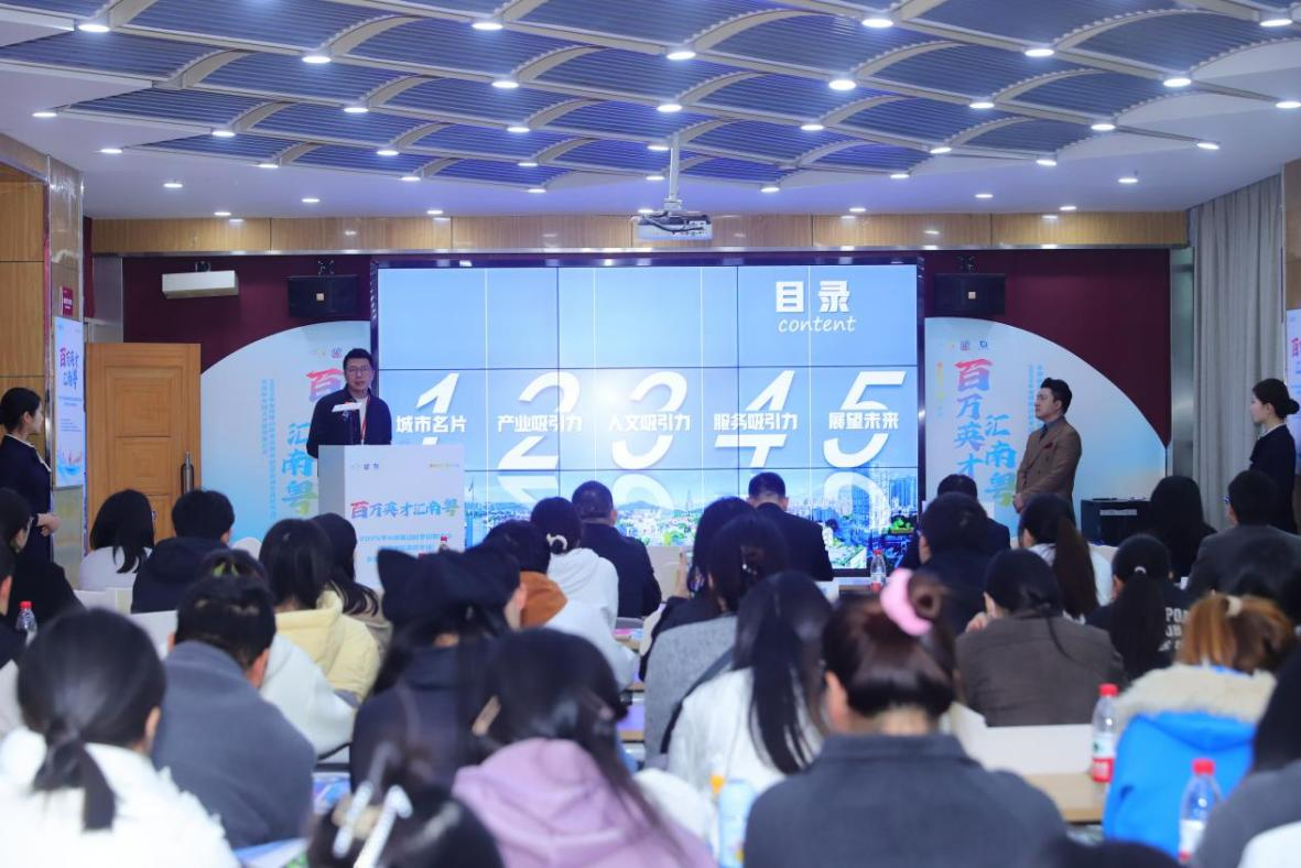 在东莞新人才政策推介会上,单俊伟科长保证。他说,“东莞不仅要‘吸引’人才,更需要‘保持、发展’!”,让学生真切感受到城市对人才的厚爱。